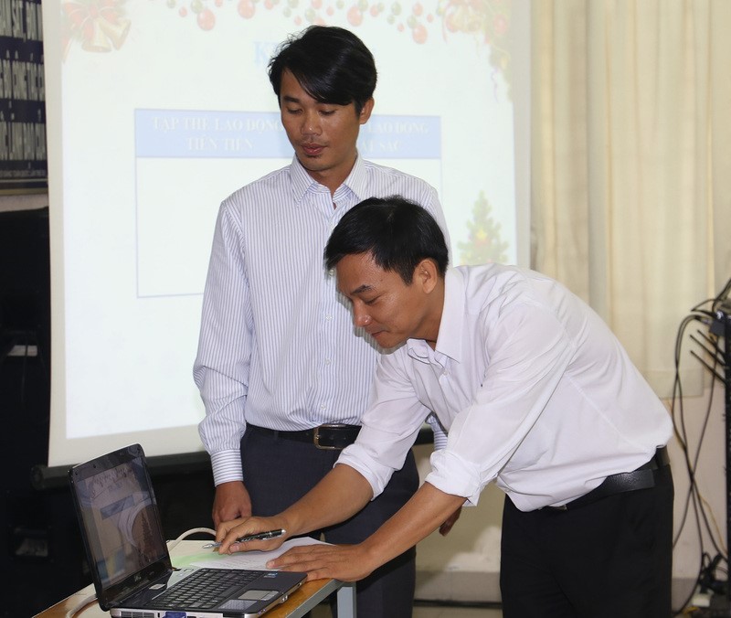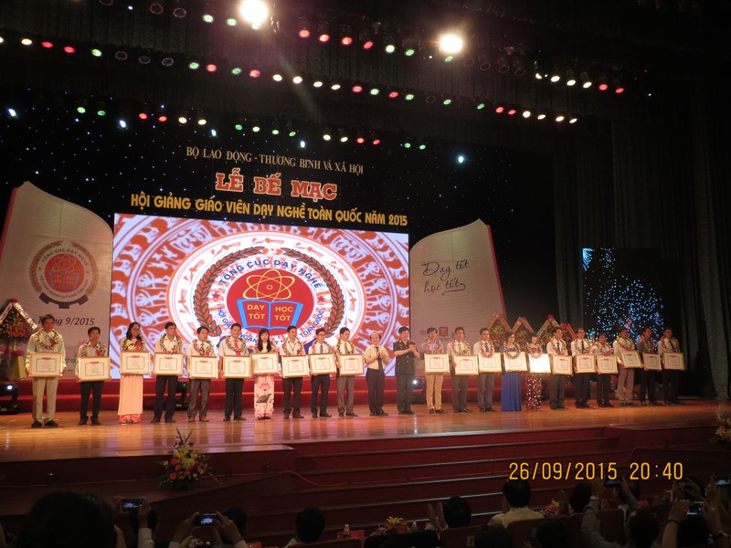 Hình 3 - Trầy Trầm Minh Tuấn nhận giải thưởng trong Hội giảng giáo viên dạy nghề toàn quốc năm 2015 - Giải Ba (ngoài cùng bên trái)