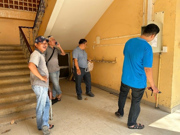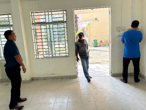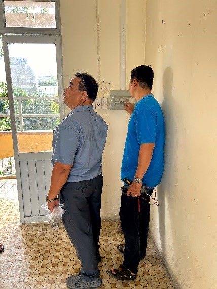 Phòng Quản trị thiết bị tiến hành kiểm tra, nghiệm thu gói thầu Sửa chữa cải tạo ký túc xá khu D trường Cao đẳng Kinh tế - Kỹ thuật Thủ Đức theo kế hoạch.